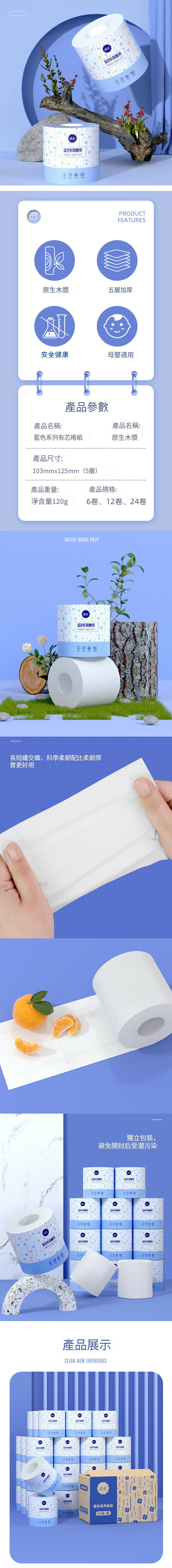 捲筒紙五層加厚有芯卷紙衛生紙【(24卷/箱)單卷120克】 廁紙 紙巾