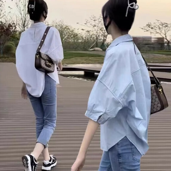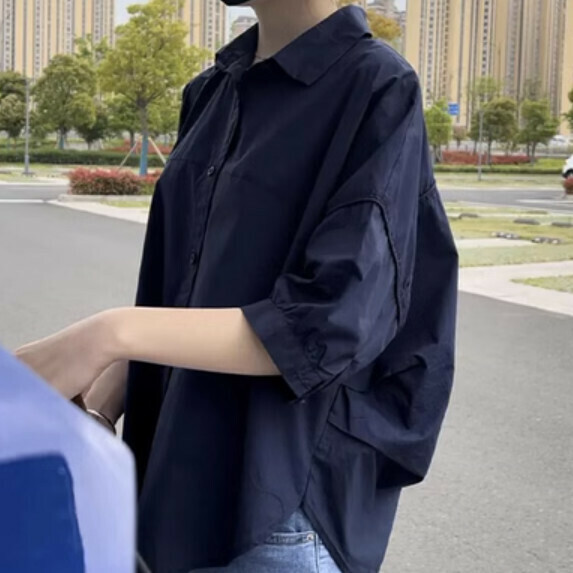 熱推五分袖襯衫女夏季(藏藍色【S_XL碼】(下單後聯繫客服確認發貨尺碼)】