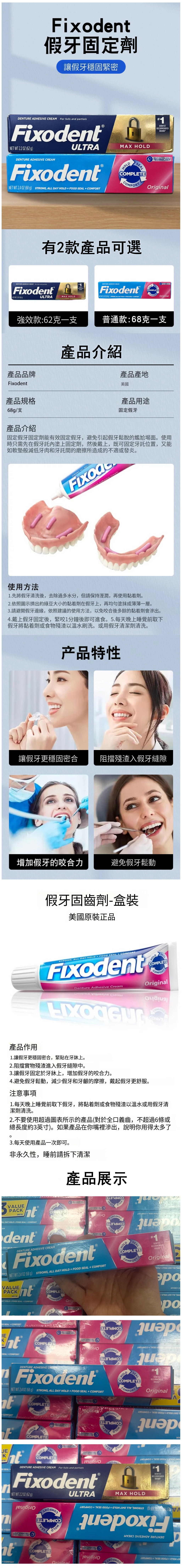 Fixodent假牙固齒劑 穩固義齒粘合霜(普通款)