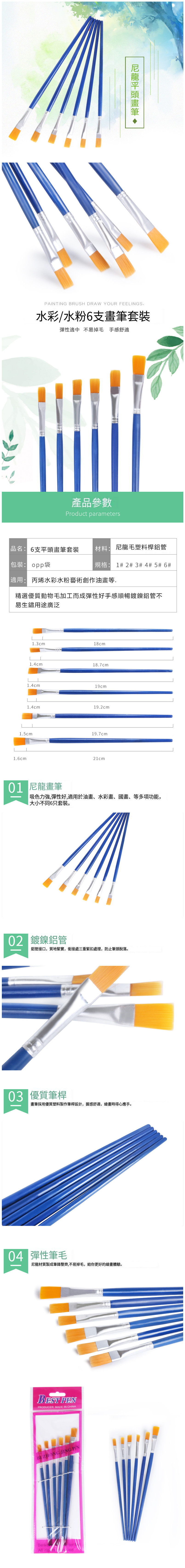 爆款平頭油畫筆套裝 美術繪畫筆刷(6支平頭畫筆套裝)