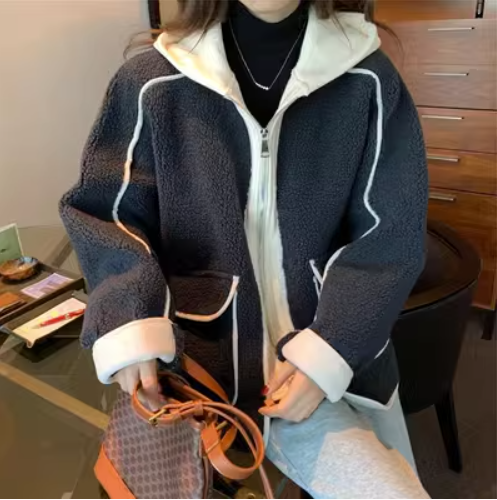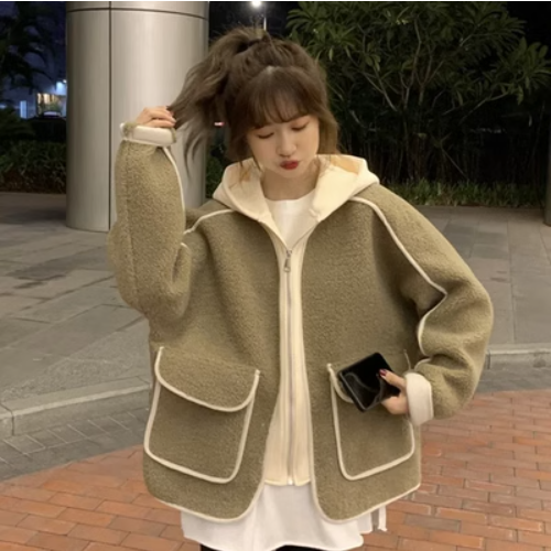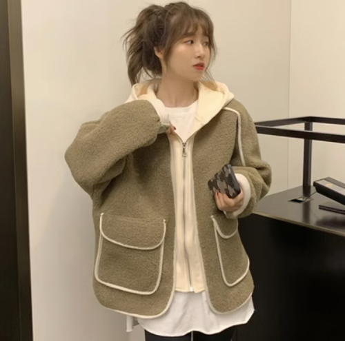 加絨加厚假兩件外套