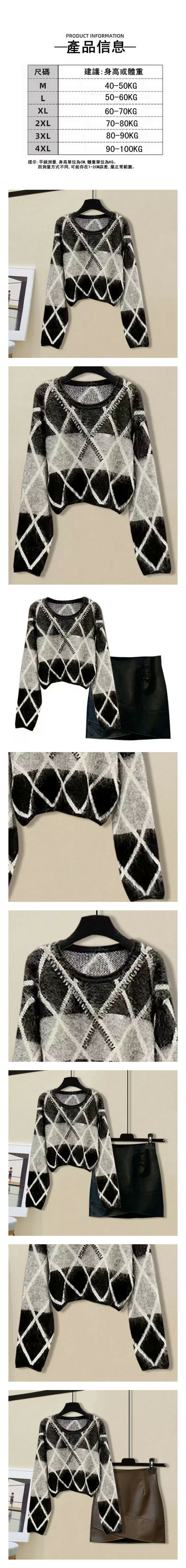 新款遮肉顯瘦菱格釘珠毛衣#單件(黑灰色)(M-4XL碼) (下單後聯系客服確認尺碼)