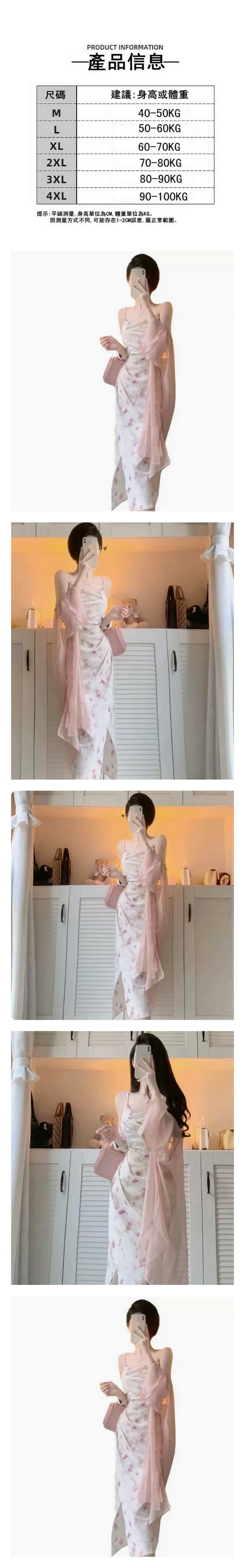 熱推碎花中長款吊帶連衣裙+防曬衫兩件套裝(粉色)(M-4XL碼) (下單後聯系客服確認尺碼)