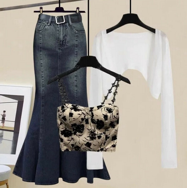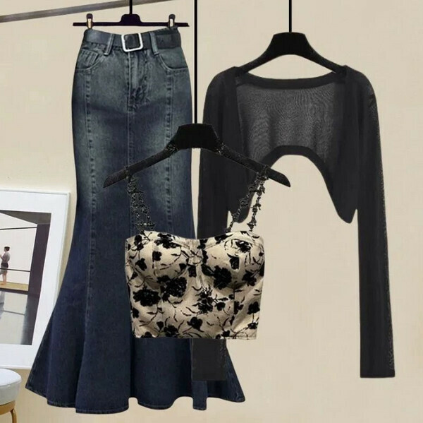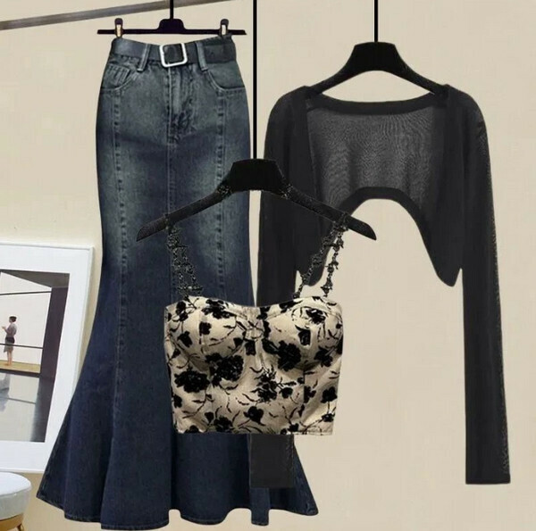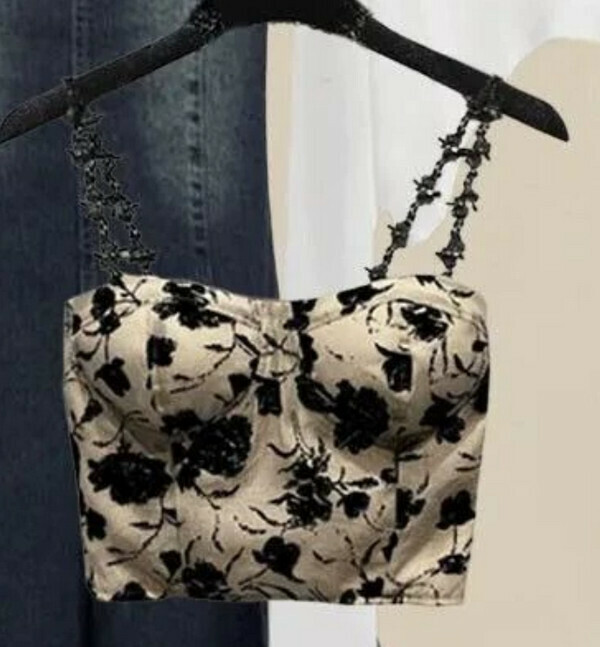 爆款碎花吊帶#單件(黑白)(M-4XL碼) (下單後聯系客服確認尺碼)