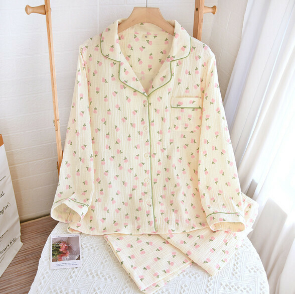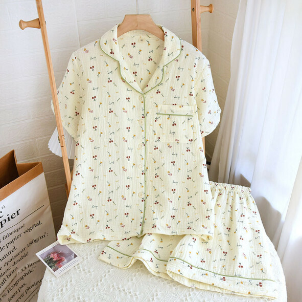 熱賣碎花薄款家居服套裝(LJH奶萌鬱金香-绉布翻領短袖短褲)【M-XL碼】【下單後聯絡客服確認發貨尺碼】