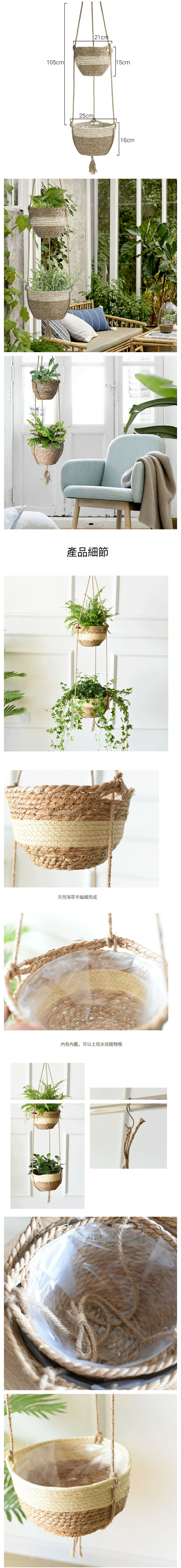 戶外懸掛花盆,天然海草吊籃,室內植物花盆【米色雙層吊籃】1件