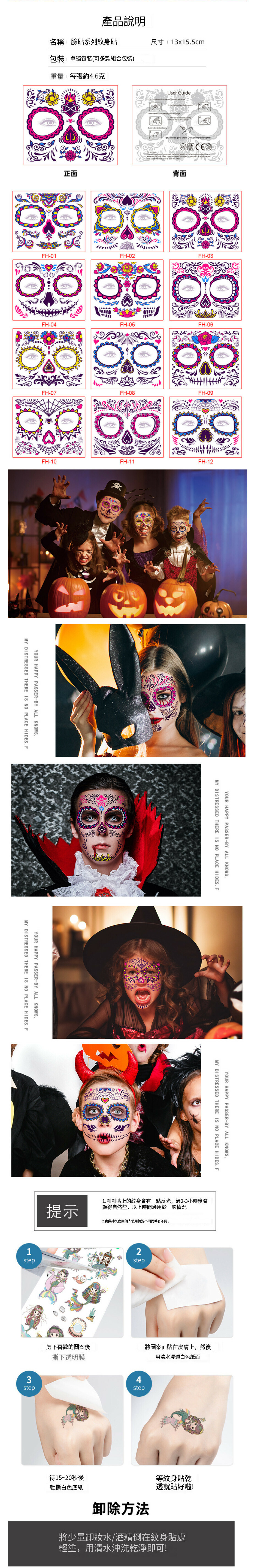 激抵螢光萬聖節紋身派對舞會臉貼紙(FH-04)