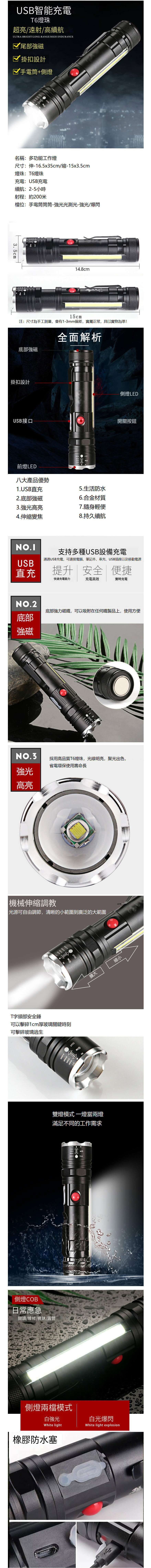 爆款可調焦型-USB手電筒 【電筒+彩盒+USB電線(不含電池)】