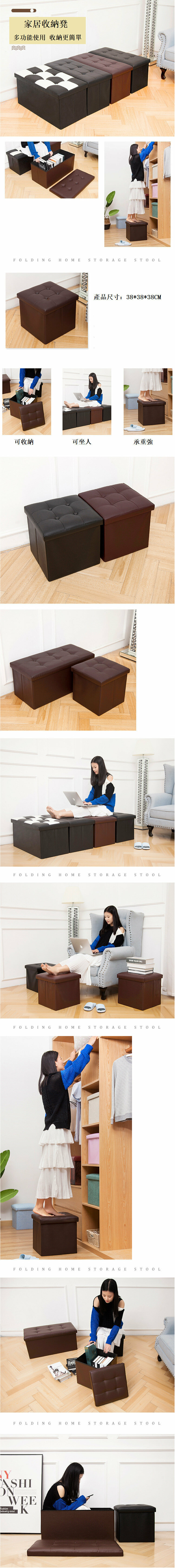 新款可摺疊收納凳子儲物凳儲物椅收納椅(棕色 尺寸:38*38*38cm)