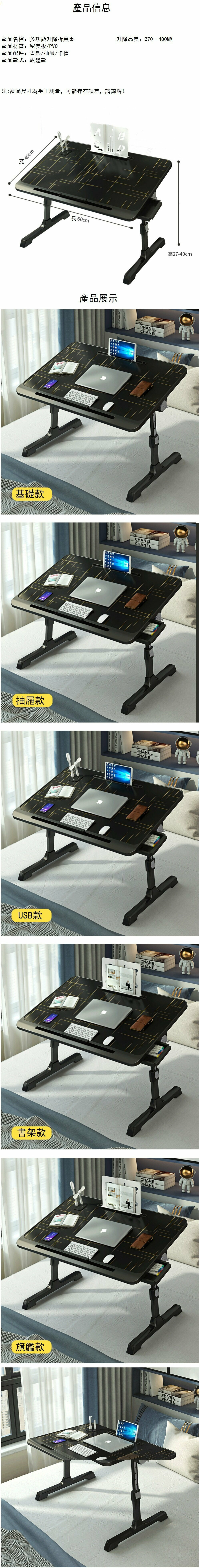 爆款床上折疊電腦懶人桌【N6全黑抽屜+書架+USB】