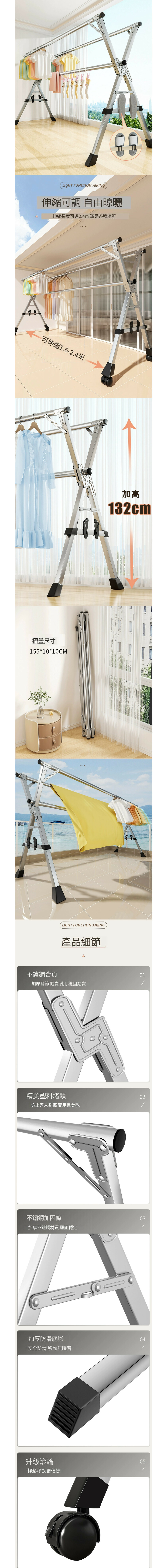 熱賣摺疊落地晾衣架(加粗雙桿經典2.4米【自由伸縮】)