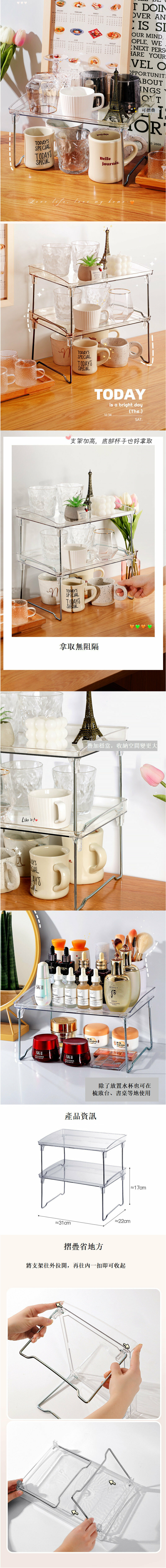 激抵折疊透明層架 杯子收納置物架 茶具收納架 (1個裝 尺寸:31*22cm)