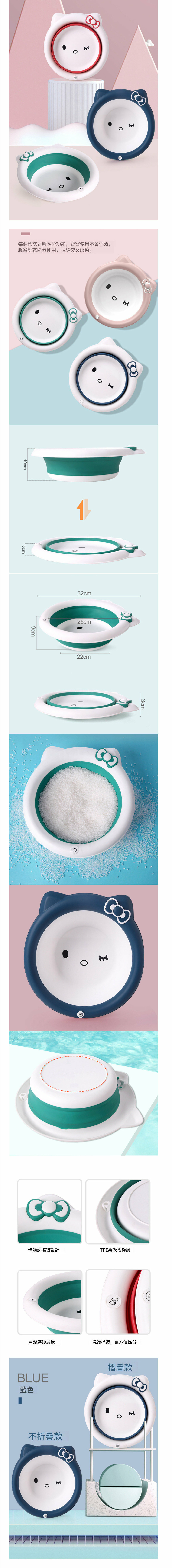 新款食品級可摺疊矽膠洗面盆(藍色-摺疊款)