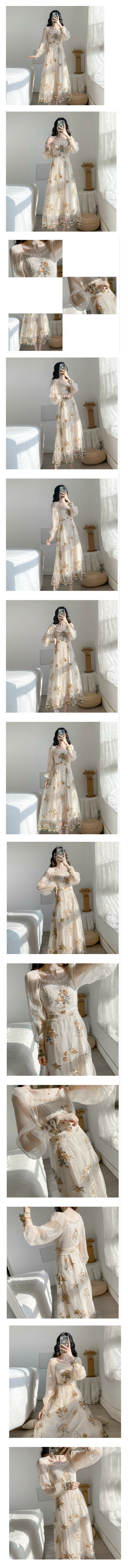激抵香風長袖網紗刺繡連衣裙(圖片色)(XS-XL)(下單後聯絡客服確認發貨尺碼)