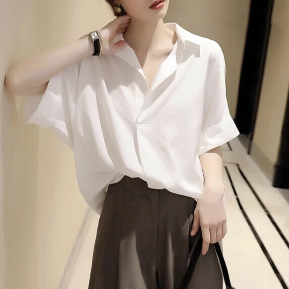 爆款法式雪紡襯衫女短袖夏季(白色【S_XL碼】(下單後聯繫客服確認發貨尺碼)】