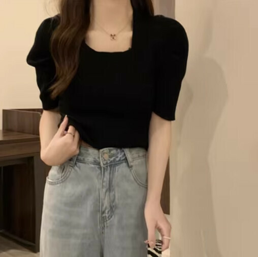 新款法式方領針織衫(黑色均碼)