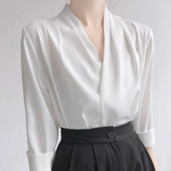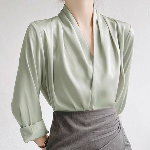 新款法式V領職業襯衫女長袖春秋(綠色【S_L碼】(下單後聯繫客服確認發貨尺碼)】