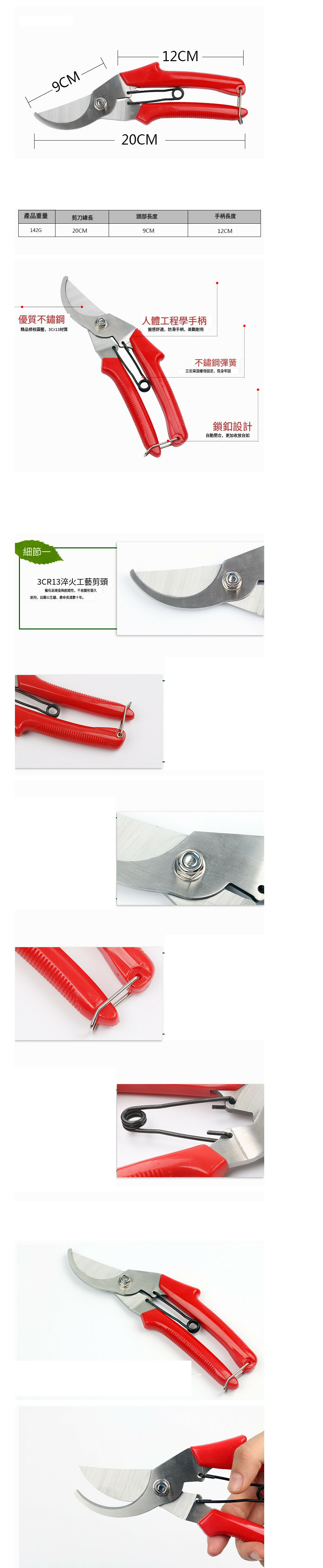 熱賣園藝種花工具修枝剪【908-紅色彈簧園林剪-插紙卡泡裝】
