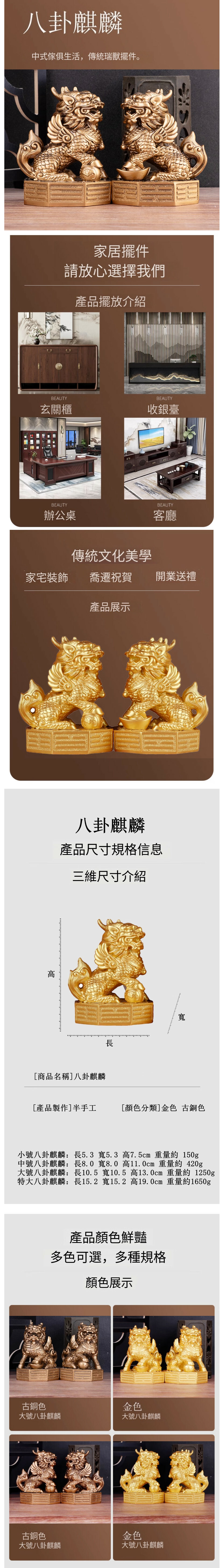 八卦麒麟擺件--風水擺飾【小號古銅色 高7.5cm】1件
