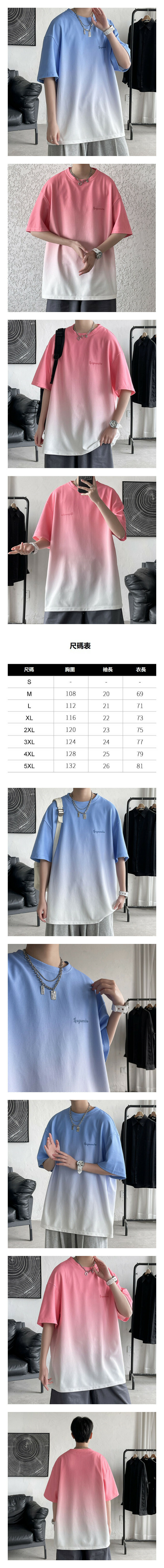 熱推漸變T恤短袖男(粉色【M_5XL碼】(下單後聯繫客服確認發貨尺碼))