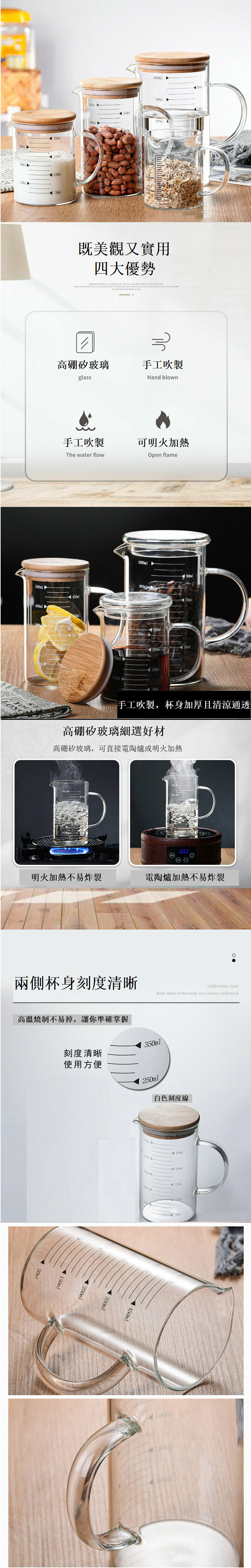 爆款有刻度玻璃測量杯 耐高溫烘焙工具 量杯 (白刻度竹蓋款 容量350ml)