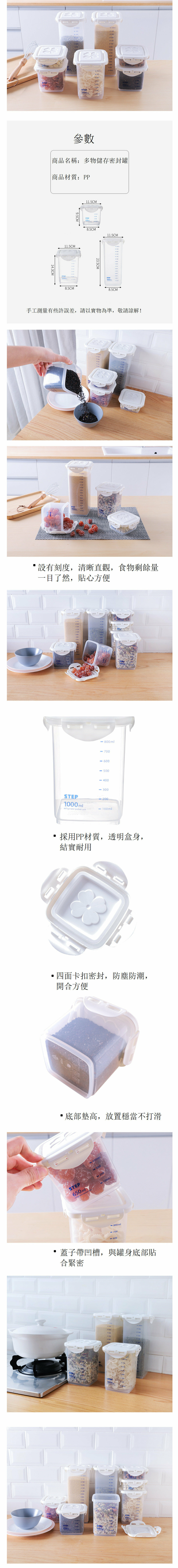 熱推帶刻度密封罐(大號1000ML) 廚房儲物罐 塑膠收納罐 零食儲存罐