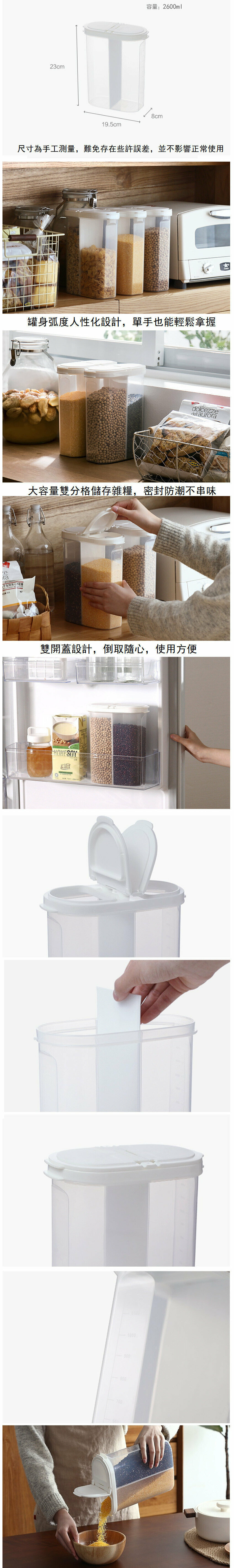 熱賣穀物儲存容器,密封食品儲存容器,多功能分隔透明儲物膠盒【顏色白色 容量2600ml】