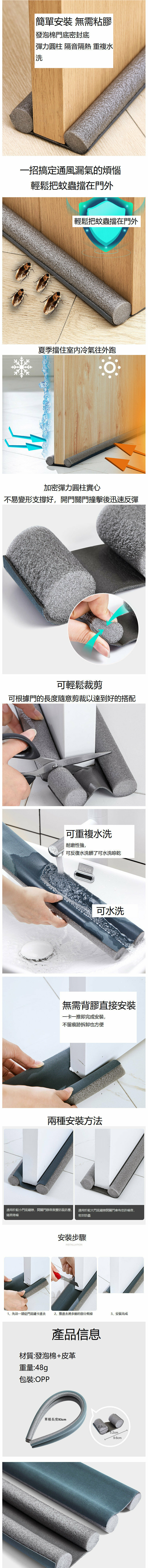 激抵[灰色/兩條裝] (單根長93cm) 門縫門底密封條 防風防塵隔音