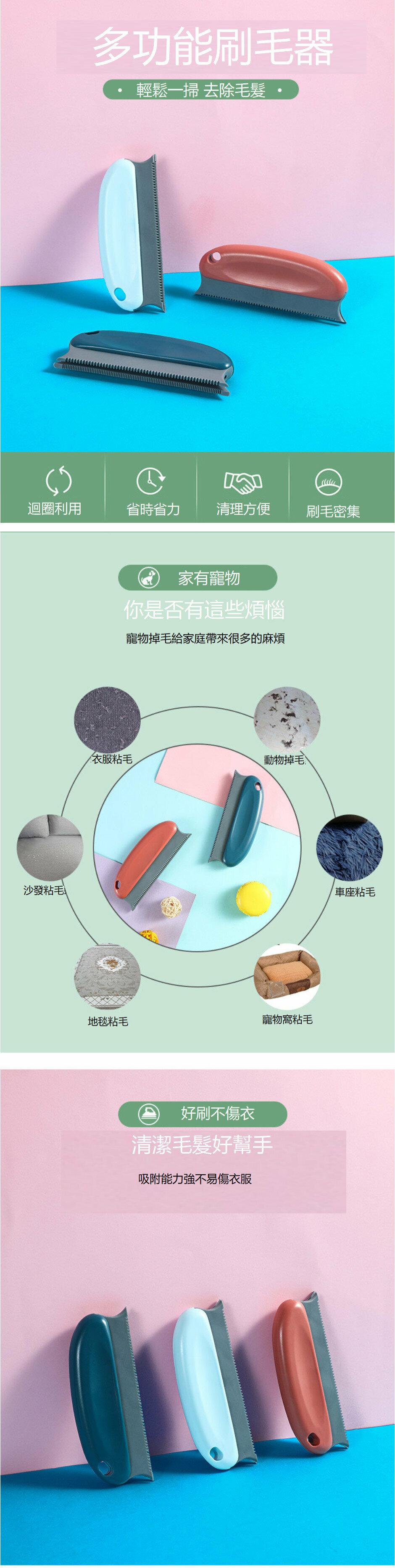 新款毛髮清理刷 便攜式除毛器 寵物毛髮清理器 除毛神器 衣物除毛刷(深藍色盒裝)