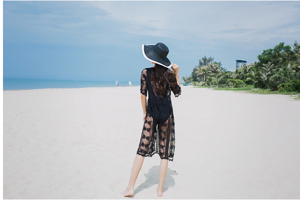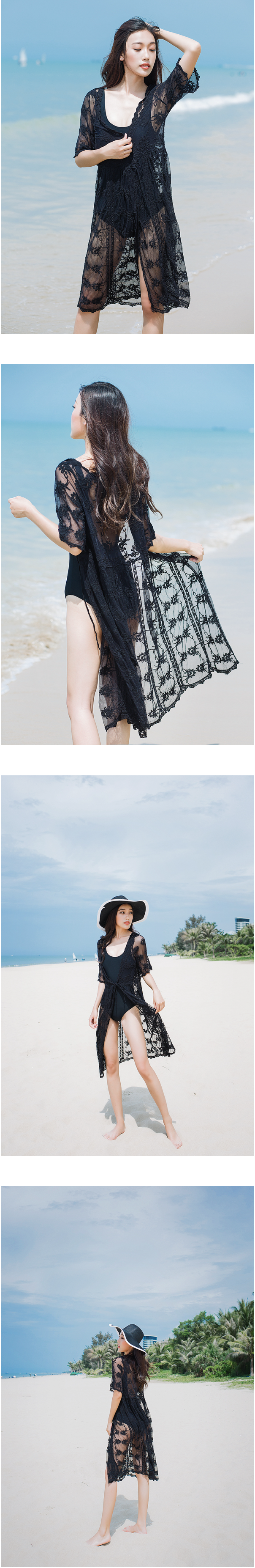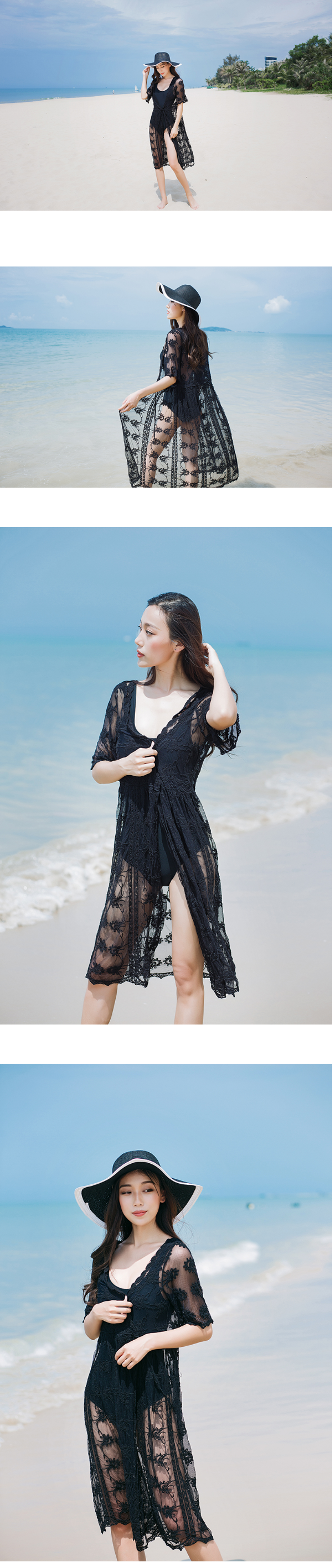 熱推半袖中長款刺繡開衫薄外套(黑色)(均碼)