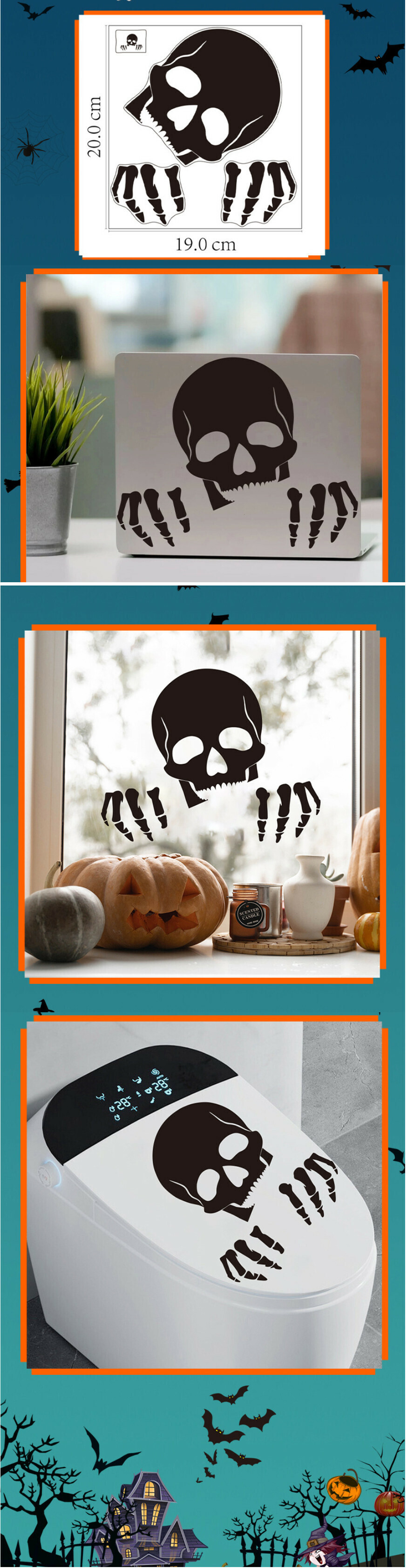 熱推萬聖節黑色骷髏頭裝飾牆貼畫(19*20CM)