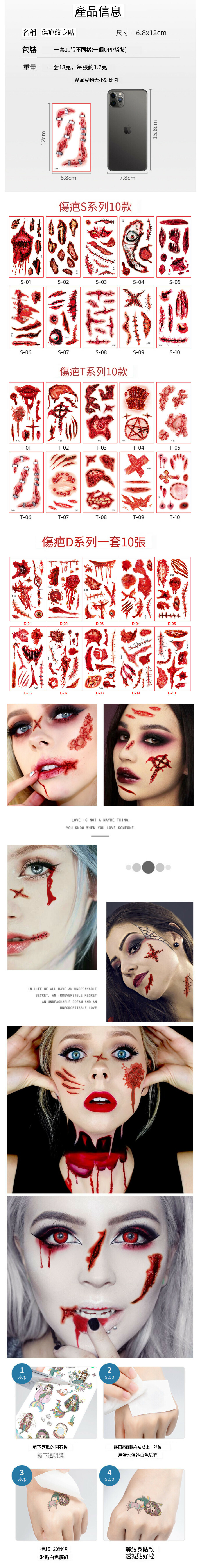 熱推萬聖節傷疤紋身防水貼紙(T套裝)