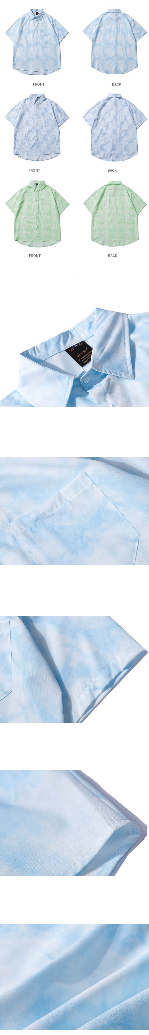 爆款原宿風紮染短袖襯衫(綠色)【M-2XL碼】【下單後聯絡客服確認發貨尺碼】