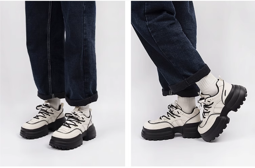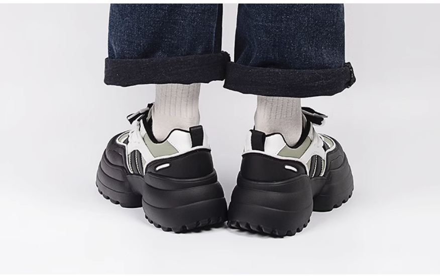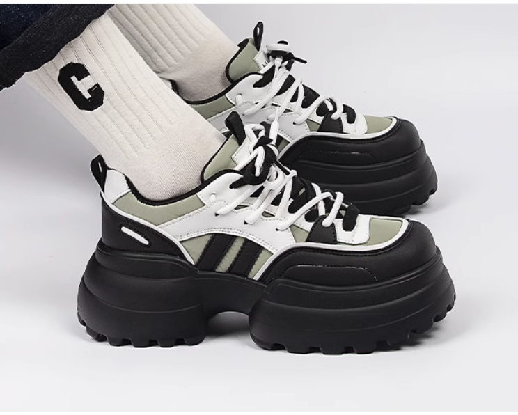熱推增高鬆糕底老爹鞋女鞋(黑綠)(尺碼:35-39)(下單後聯絡客服確認發貨尺碼)】