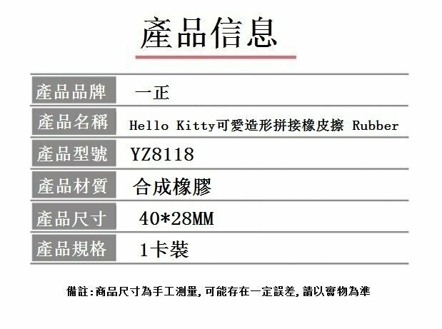 新款擦膠-Hello Kitty可愛造形拼接橡皮擦 Rubber (1件)(紅色卡)