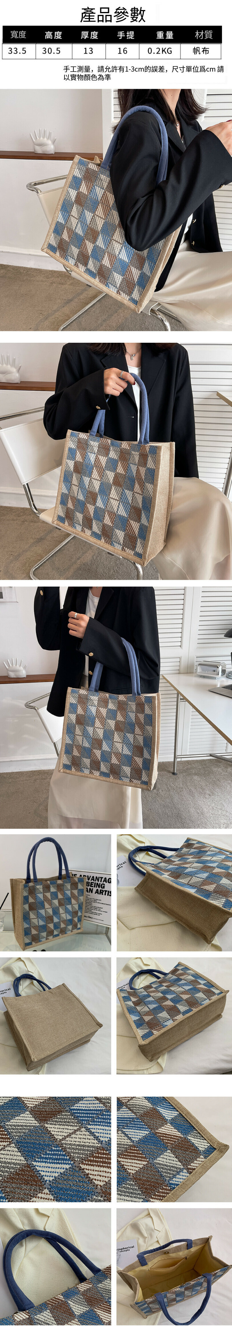 新款亞麻休閒手提包帆布包手拎包小挎包(藍色)