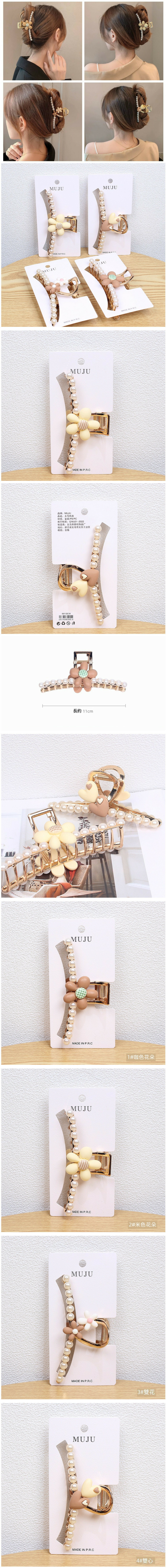 新款高級感珍珠花朵髮夾(1#咖色花朵)