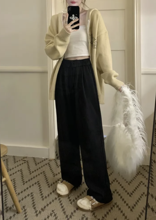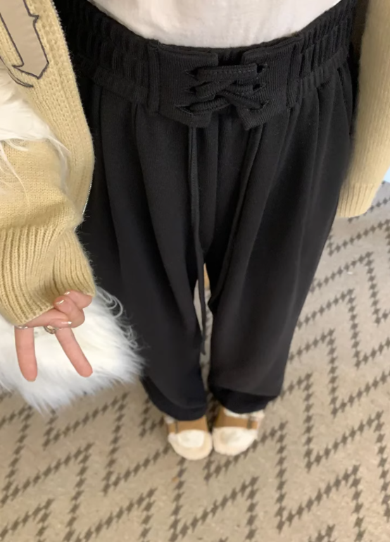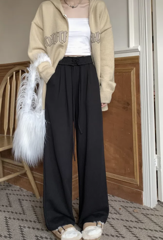 高腰綁帶加絨闊腳褲長褲