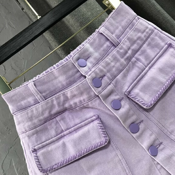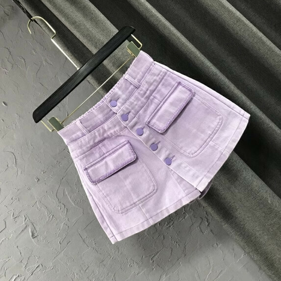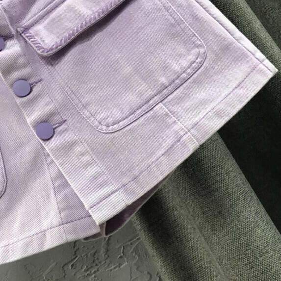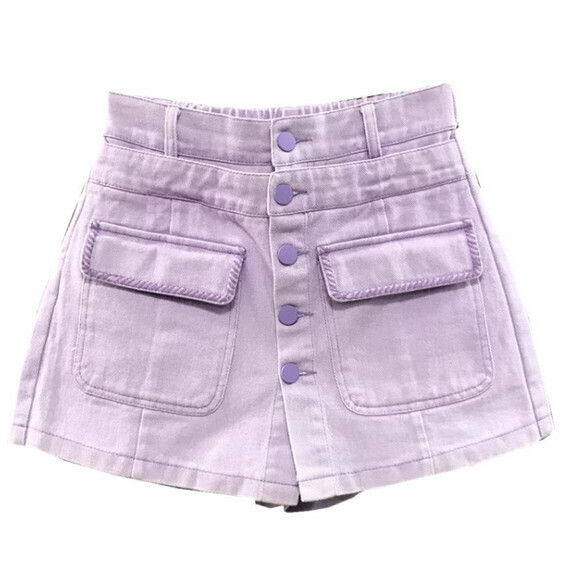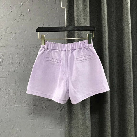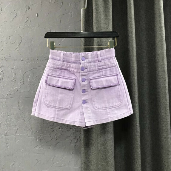 熱賣高腰牛仔假兩件闊腿短褲女夏裝(紫色【S_XL碼】(下單後聯繫客服確認發貨尺碼)】