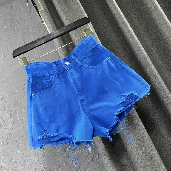 熱賣高腰牛仔破洞闊腿短褲女夏裝(綠色【S_XL碼】(下單後聯繫客服確認發貨尺碼)】