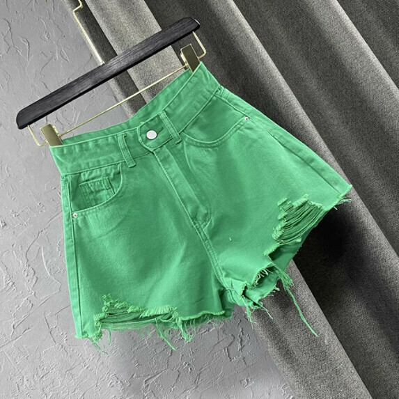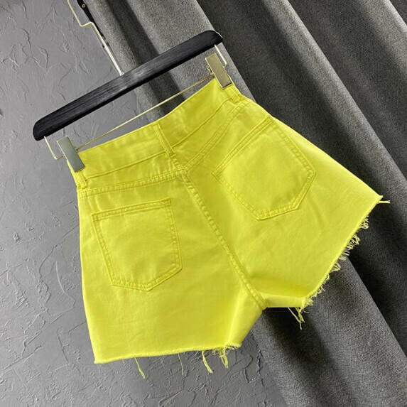 熱賣高腰牛仔破洞闊腿短褲女夏裝(黃色【S_XL碼】(下單後聯繫客服確認發貨尺碼)】