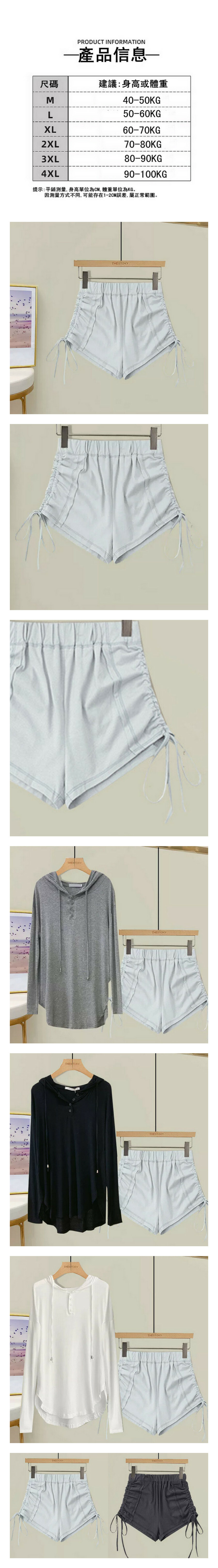激抵高腰抽繩短褲#單件(淺灰色)(M-4XL碼) (下單後聯系客服確認尺碼)