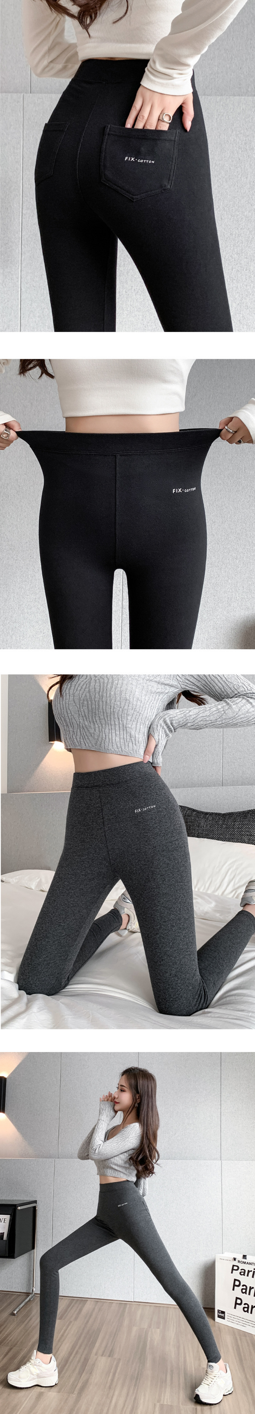 新款高腰字母口袋彈力小腳褲(咖色)(尺碼:L-XL)(下單後聯絡客服確認發貨尺碼)