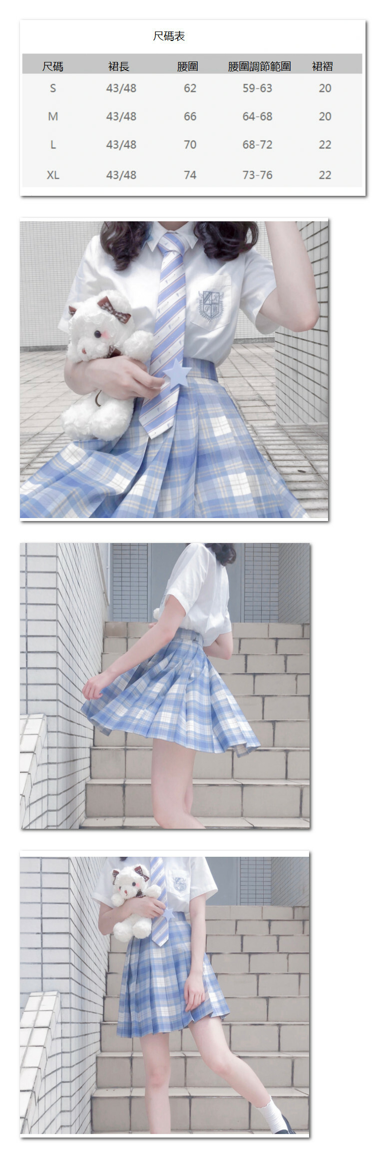 熱推高腰格子百褶裙(藍白格子)(尺碼:S-XL)(裙子長度兩種規格可選:43CM/48CM)(下單後聯絡客服確認發貨尺碼)