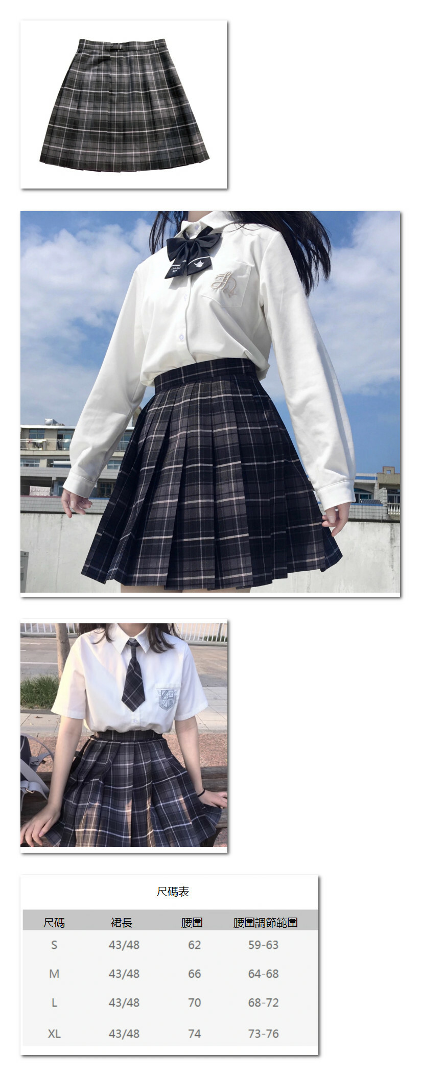 熱推高腰格子百褶裙(煙灰)(尺碼:S-XL)(裙子長度兩種規格可選:43CM/48CM)(下單後聯絡客服確認發貨尺碼)
