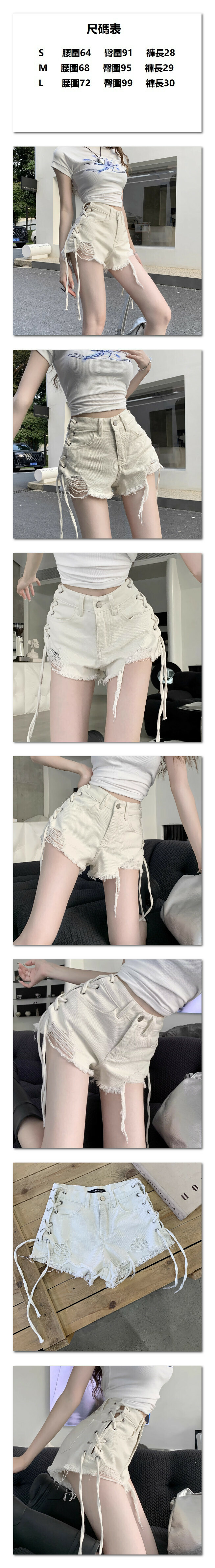 新款高腰綁帶闊腿牛仔短褲女夏(杏色【S_L碼】(下單後聯繫客服確認發貨尺碼)】