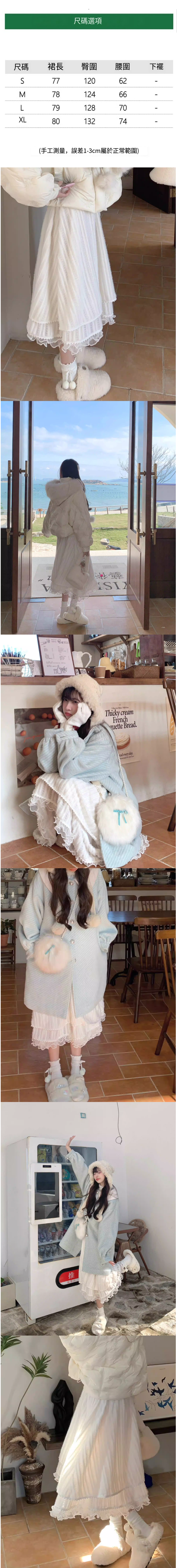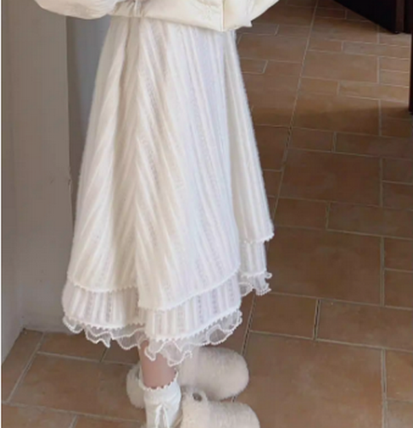熱推高腰半身裙女秋冬A字花邊傘裙(白色S-XL)(下單後聯絡客服確認發貨尺碼)