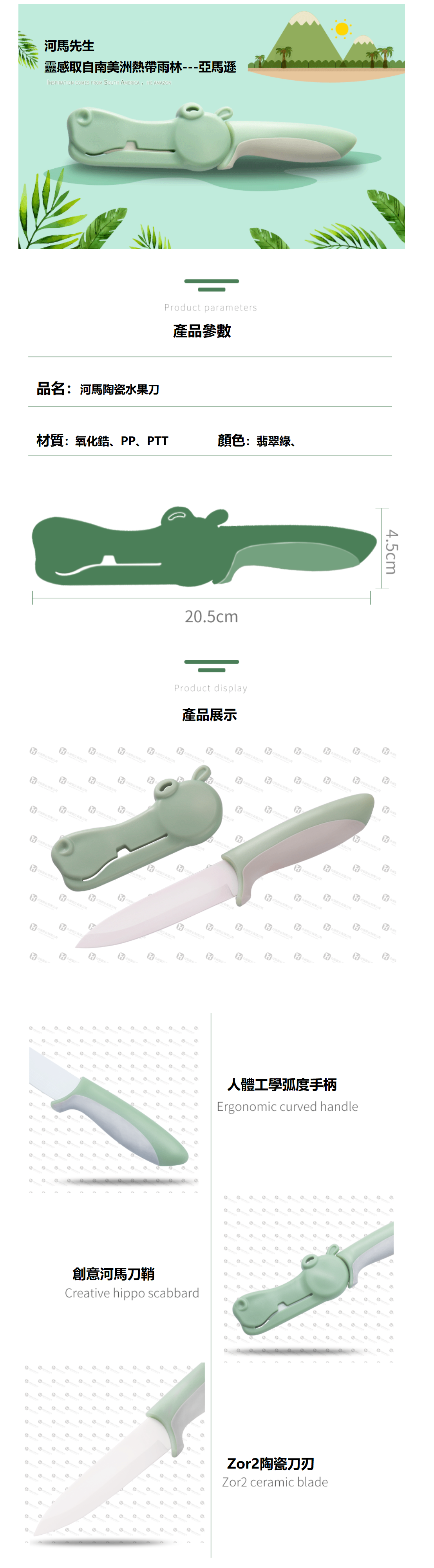 熱賣河馬陶瓷水果刀 嬰兒安全輔食刀 -【綠色】