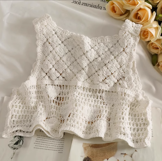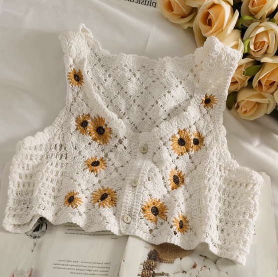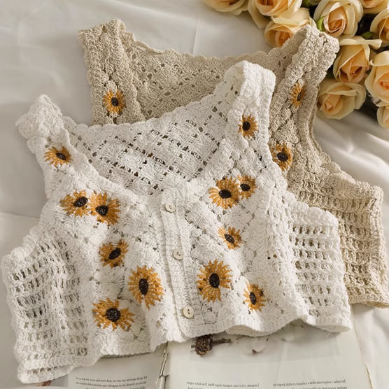 鏤空針織繡花開衫小背心