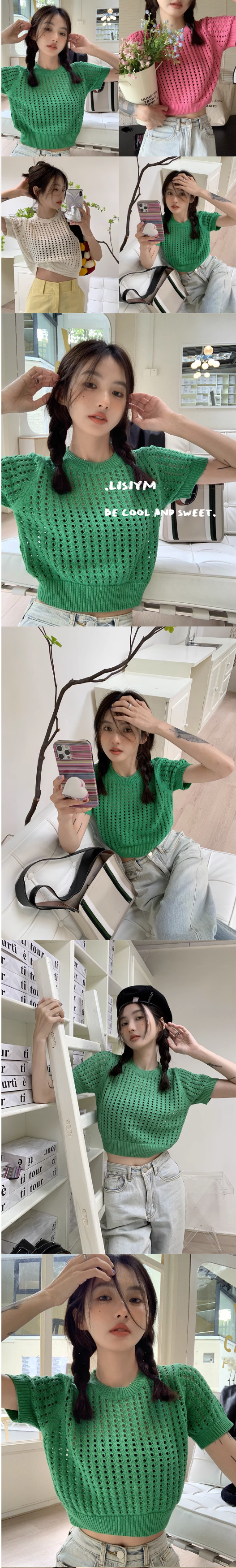 鏤空短袖罩衫寬松針織衫